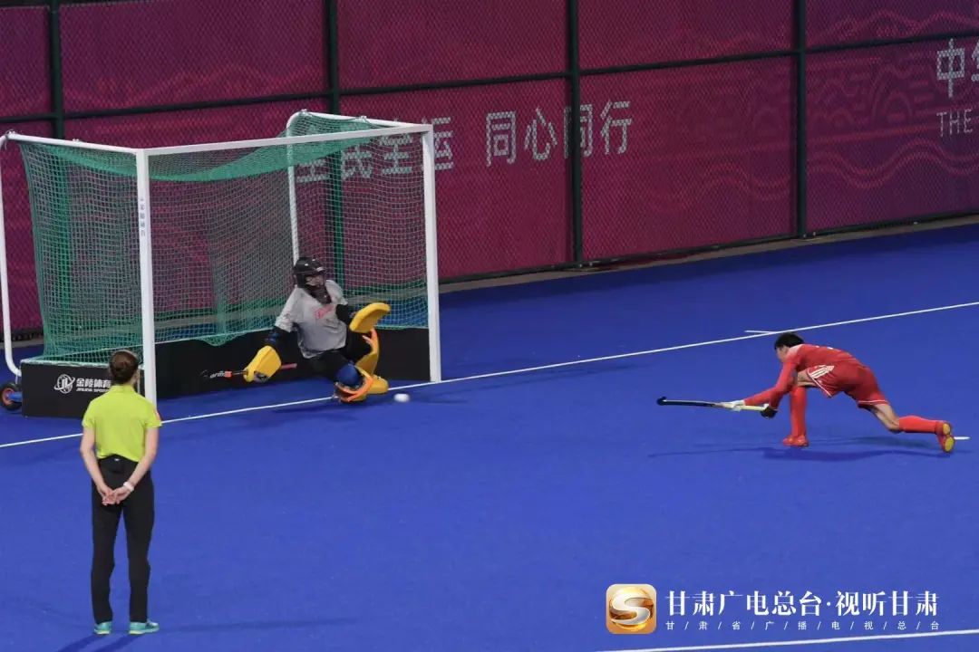 2021年9月21日,中华人民共和国第十四届运动会男子曲棍球1/4决赛在陕西海豚体育新校区举行,甘肃队对阵天津队,双方在常规比赛时间内2:2战平,比赛进入23米球,经过每组各5个罚球的决战,最终甘肃队以4:3击败天津队,成功挺进四强!